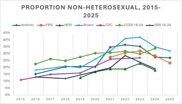 El autor Eric Kaufman, al interpretar los datos, afirma que la identificación trans “está en caída libre” entre los jóvenes. Señala además que las identidades sexuales no conformes (etiquetas como “queer” o “questioning”) también habrían experimentado un declive significativo. La fuente principal proviene de una encuesta realizada por la Fundación para la Libertad de Expresión e Individualidad (FIRE), aplicada a más de 60.000 estudiantes universitarios en Estados Unidos. Según el análisis, en 2025 apenas el 3,6 % de los encuestados se identificaron con un género distinto de hombre o mujer. En contraste, esa cifra fue de 5,2 % en 2024 y de 6,8 % tanto en 2022 como en 2023, lo cual evidencia que en apenas dos años ese porcentaje se habría reducido a la mitad.
